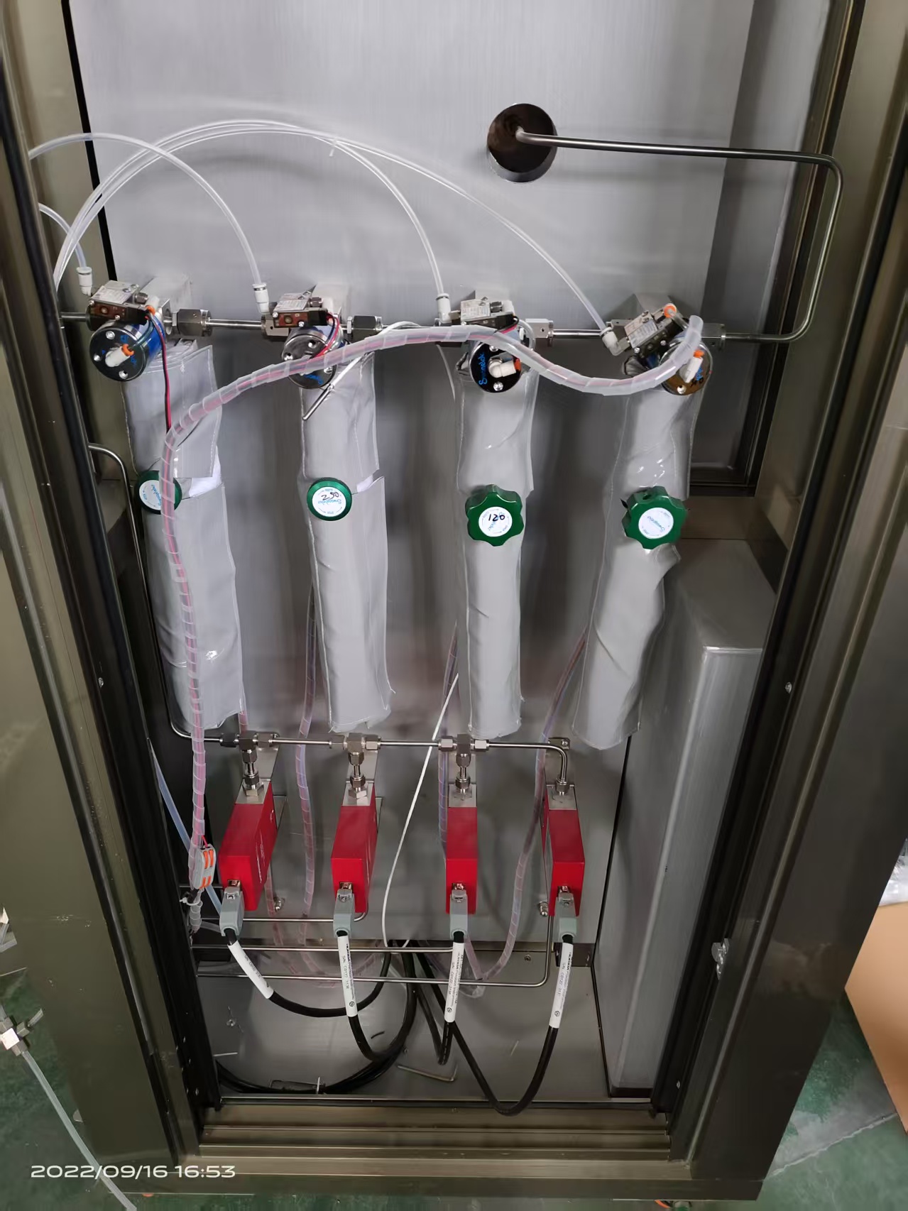 每个源瓶都有一个加热包,管道也缠了加热带 |